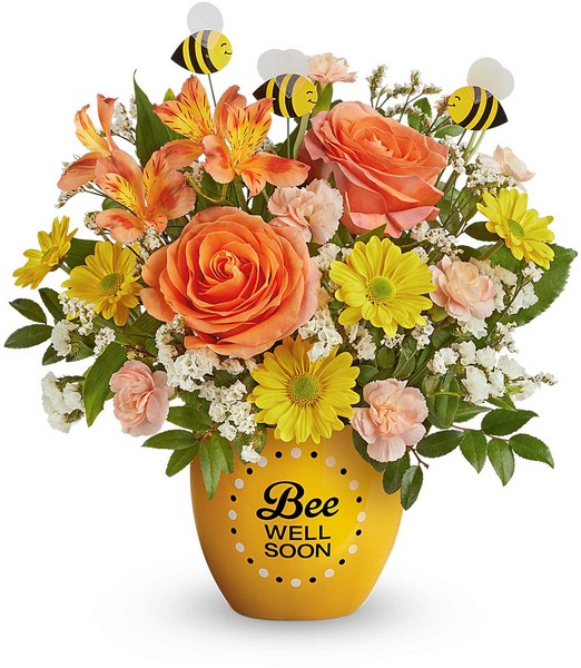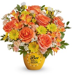 Lift their spirits with the Buzzworthy Blooms Bouquet! Bursting with vibrant flowers and buzzing with charm, this cheerful arrangement is hand-delivered in our Buzzing Bee Well Pot, a sweet ceramic keepsake that's sure to bring smiles and well wishes.